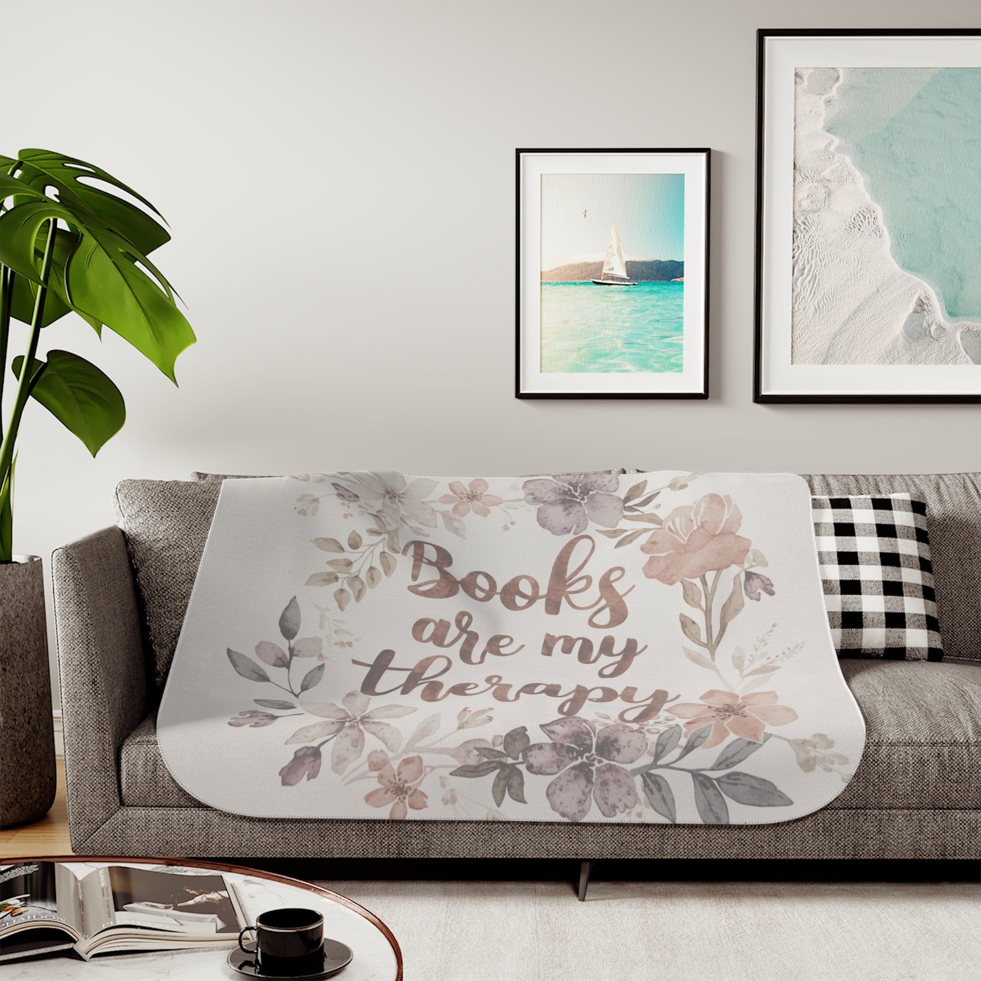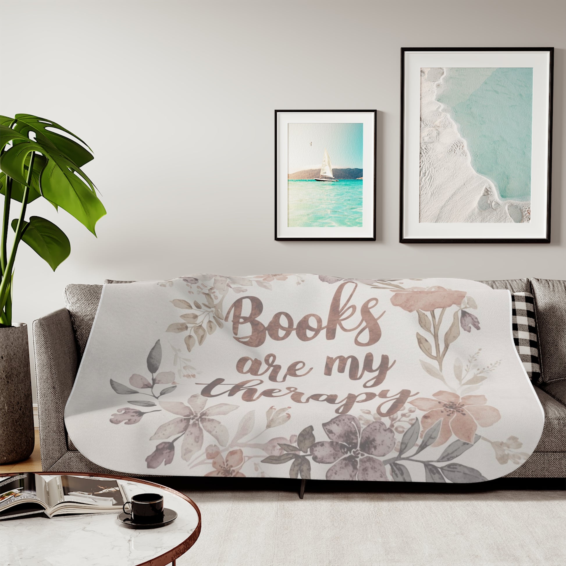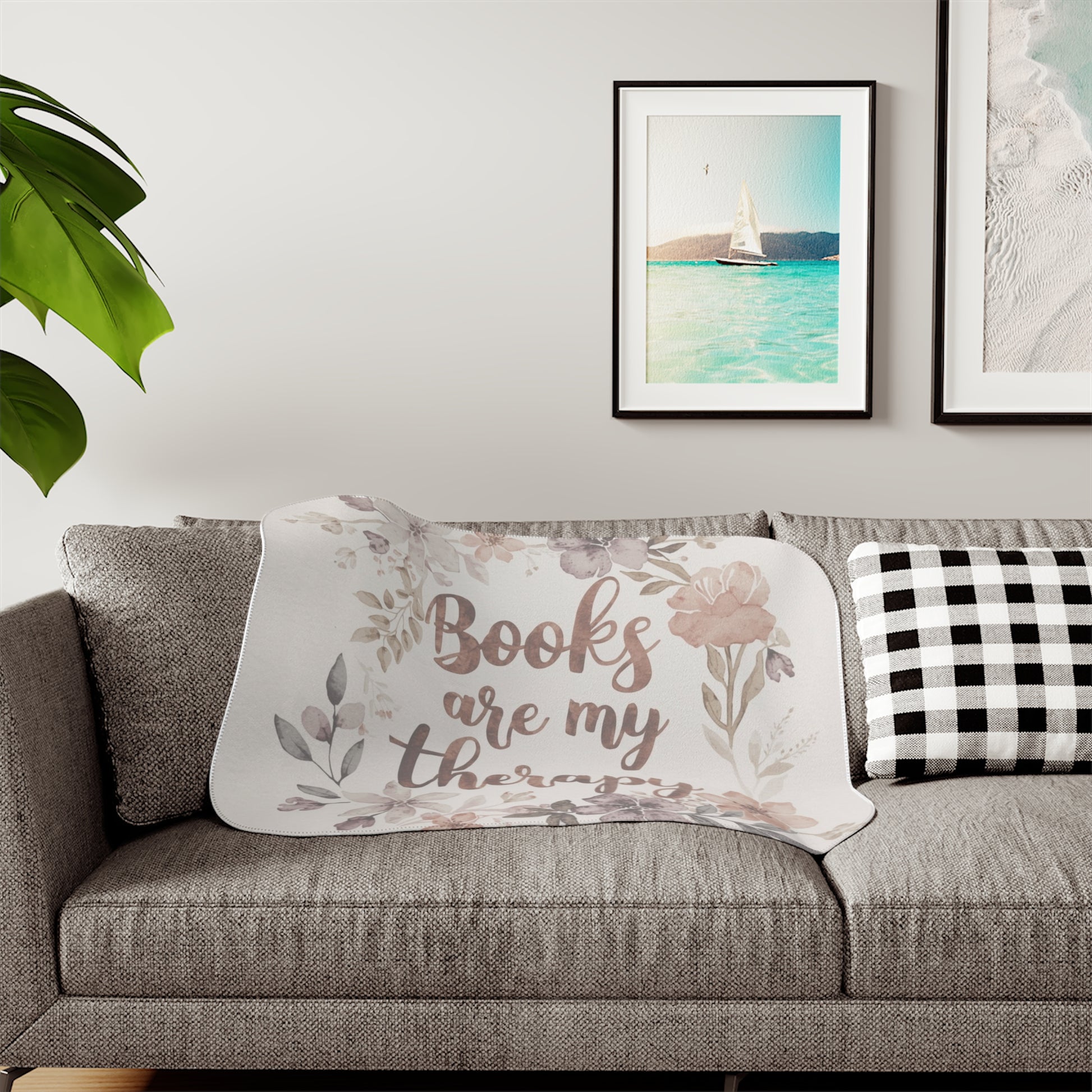This sherpa blanket with the wording 'books are my therapy' exudes coziness and comfort. Perfect for book lovers looking to snuggle up and read a good book. Ideal for gifts during the holiday season, birthdays, or any special occasion.