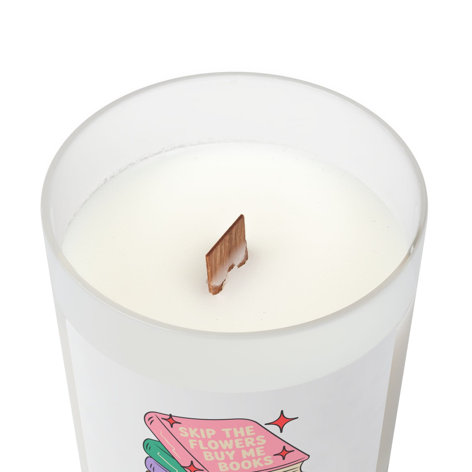 Skip the Flowers Buy Me Books Candle, Frosted Glass 11oz | Book Lover Candle